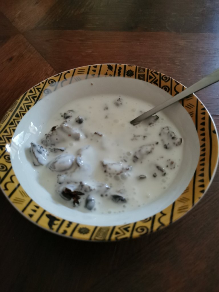 En god slumt eplecidereddik og molkosan. Surdeigsstarteren min har ferie i fryseren så jeg tok det jeg hadde! Helte over vann, slik at alt var vått men ikke oversvømt. Dagen etter var alt trukket inn, da helte jeg nemlig over solbærsaft, ta det du har!