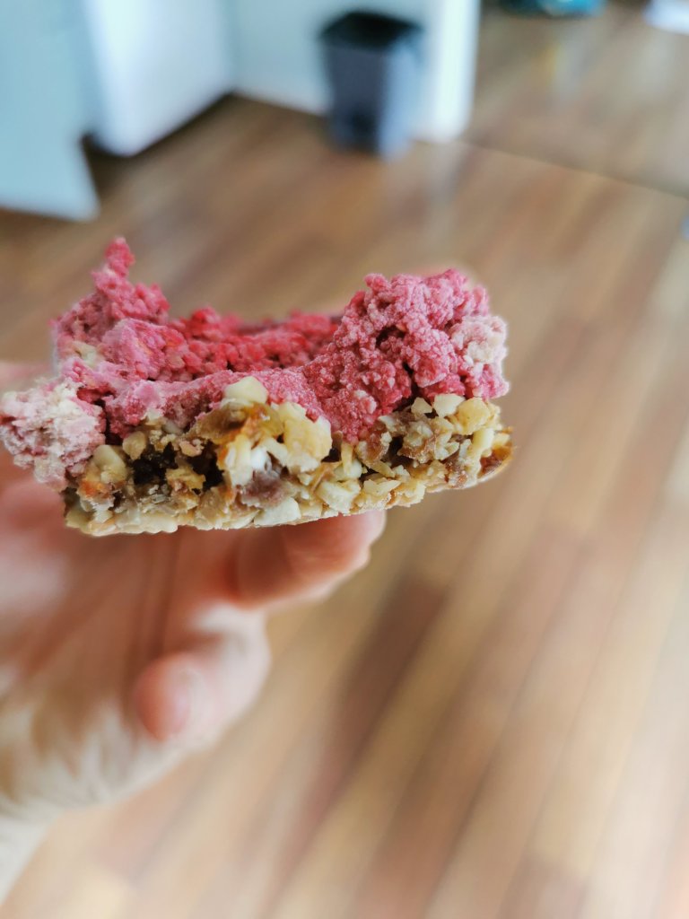 Bunnen hadde jeg i 150g dadler, 130g peanøtter, litt honning og en klype salt. Kjørte alt i blender å trykte det ned i en form.